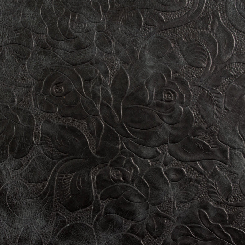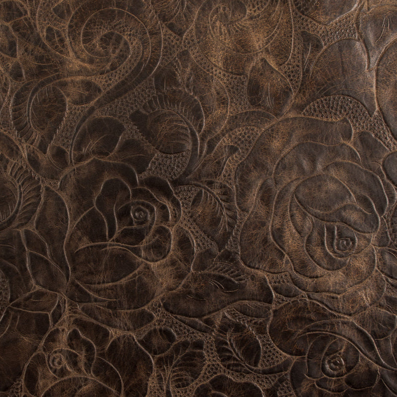 Authentic Eagle- Embossed top grain cowhide in a uniform rose flower print. Natural dull wax top finish , hand rubbed aniline dyes, washed at final to semi shrink texture for a more realistic look and feel. Colors will vary from skin to skin as aniline dyed finished by hand.
