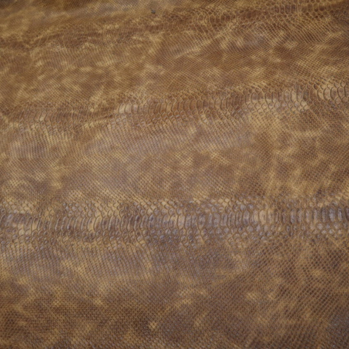 Authentic Mini Anaconda- Embossed top grain cowhide in a repeating python belly and back print. Natural dull wax top finish , hand rubbed aniline dyes, washed at final to semi shrink texture for a more realistic look and feel. colors will vary from skin to skin as aniline dyed finished by hand.