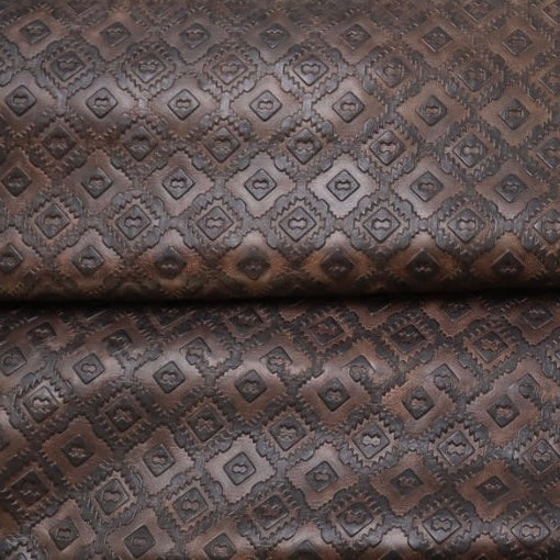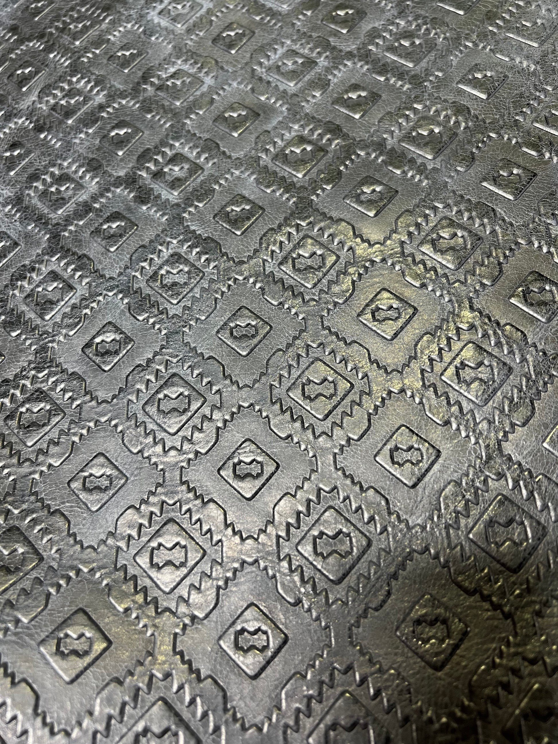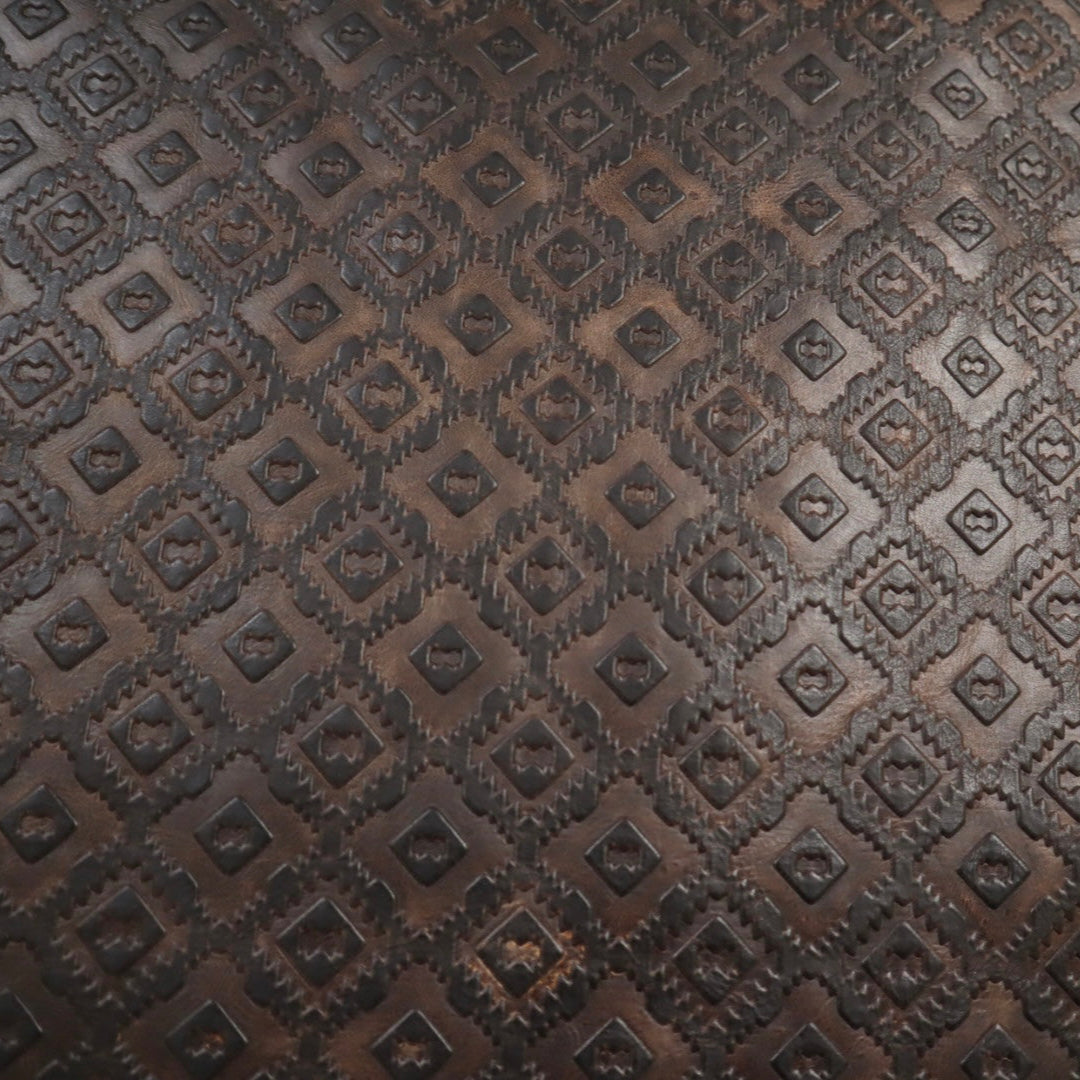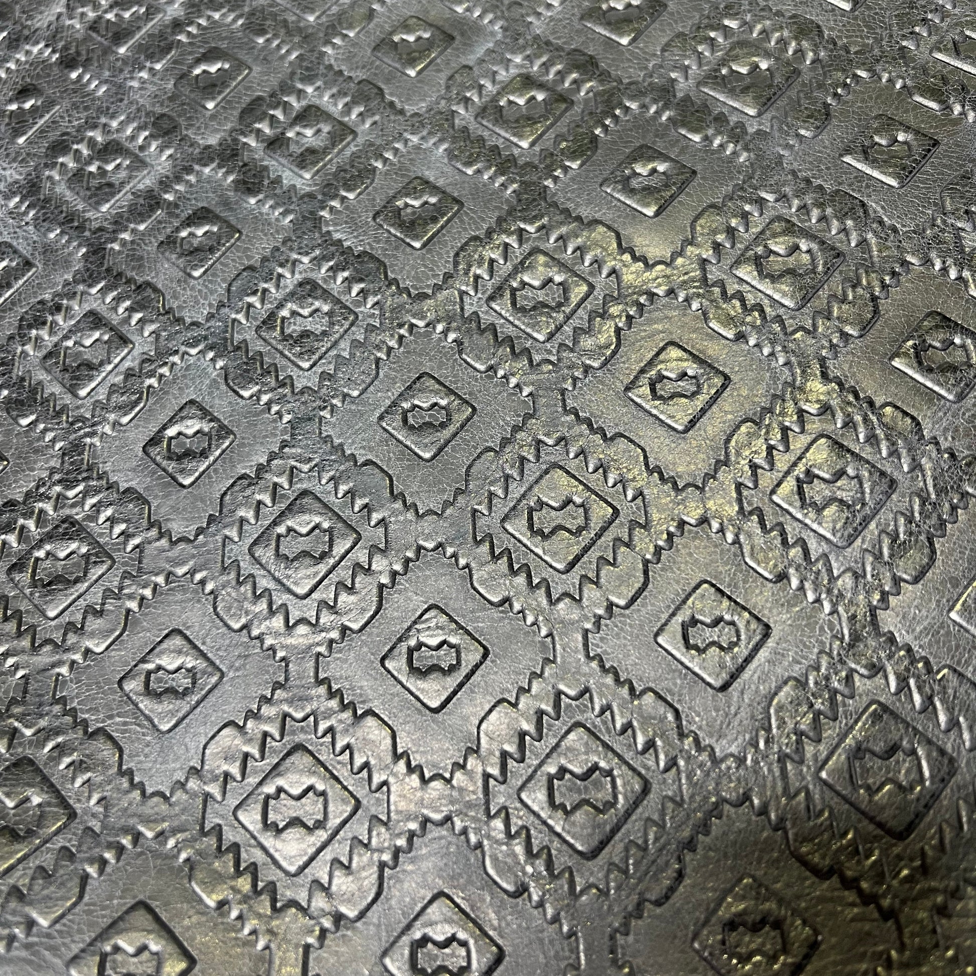 Authentic Thunder- made to embrace the American Navajo theme. This geometric design is easy to cut with deep valleys, creating highs and lows in color depth. Authentic thunder is finished with natural waxes and oils, and hand applied aniline dyes to display rich color.