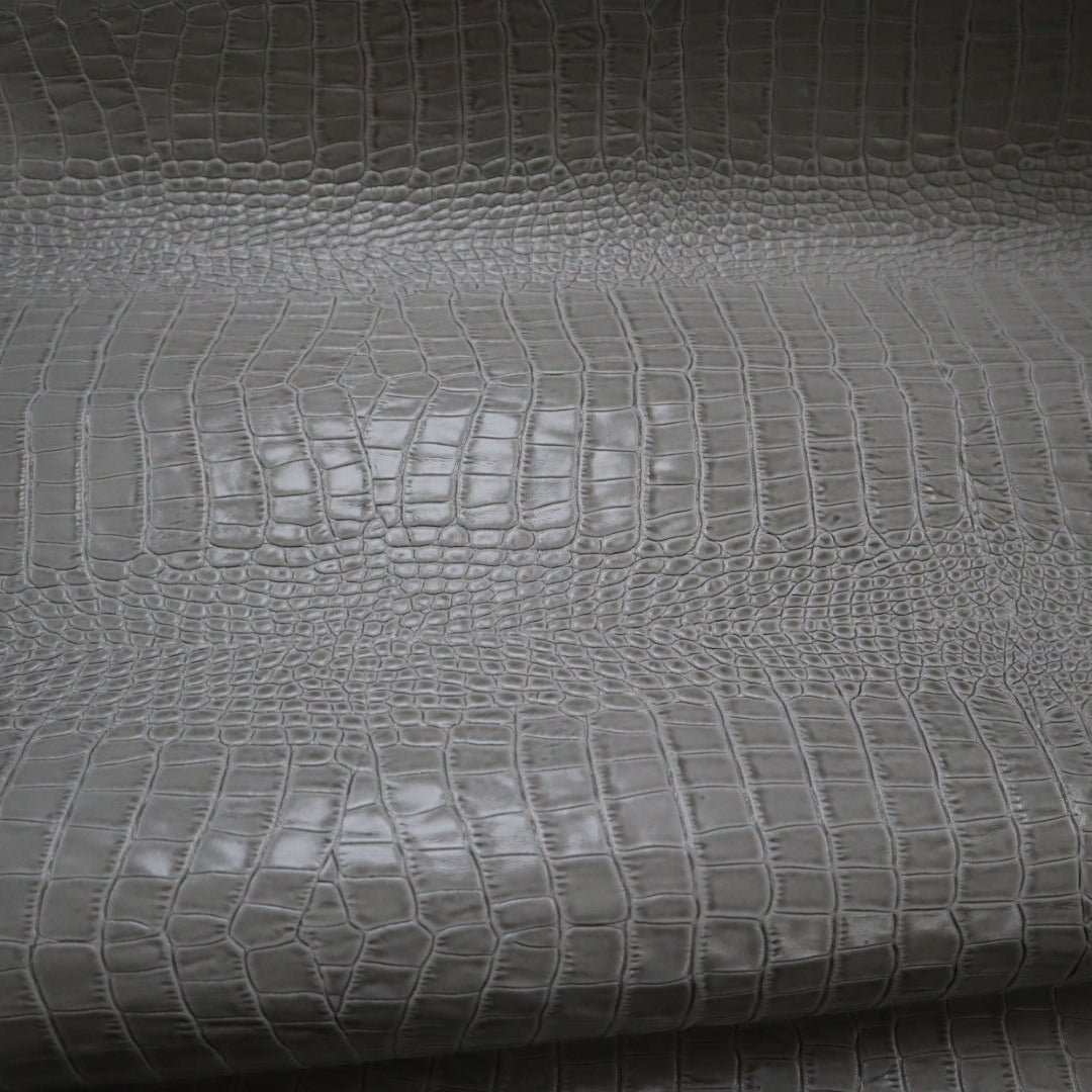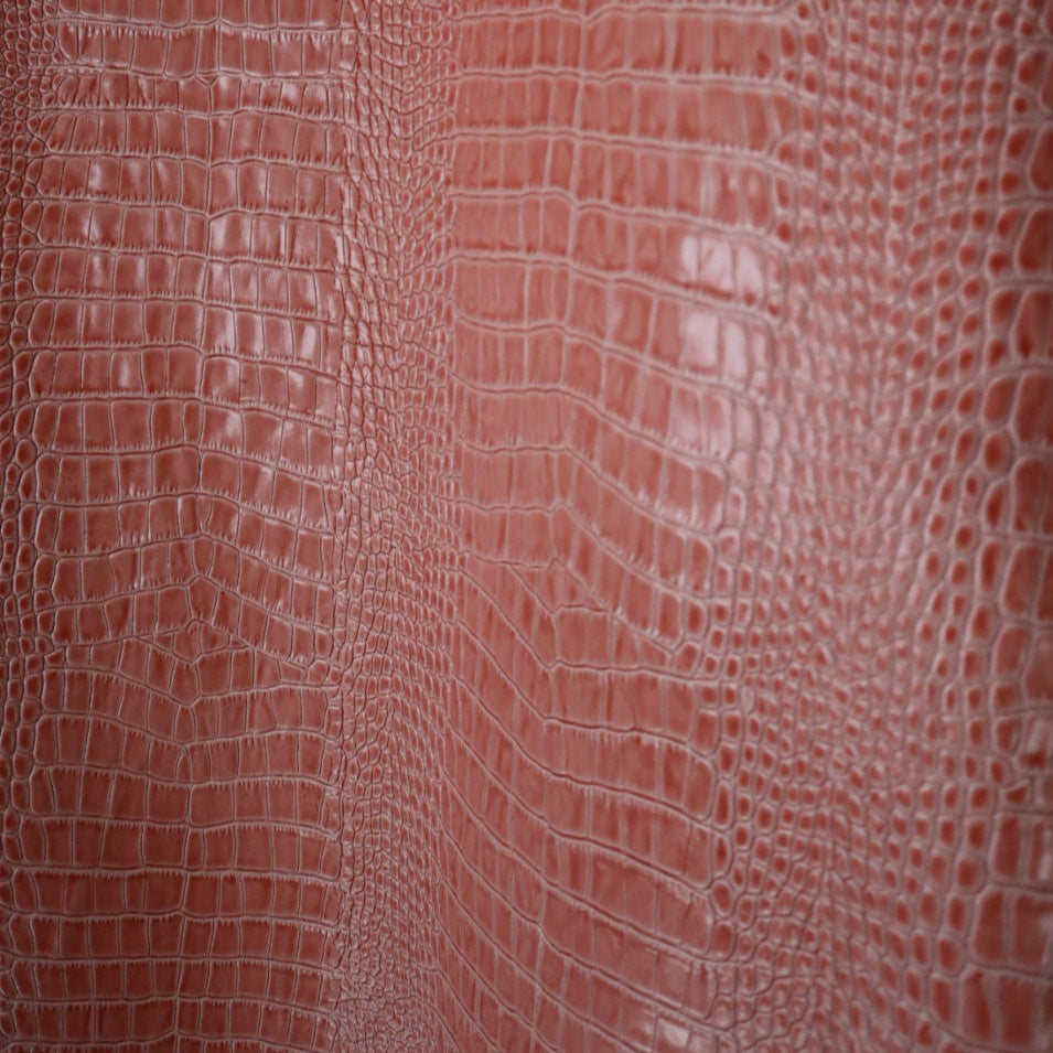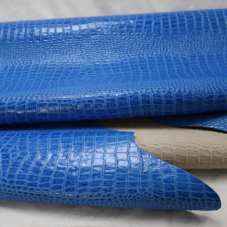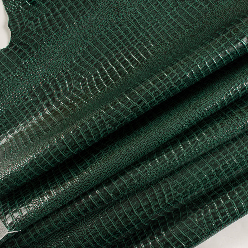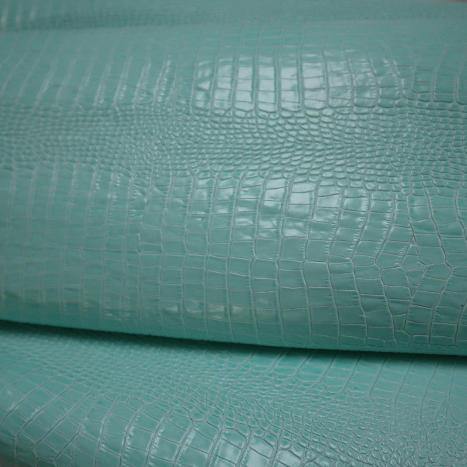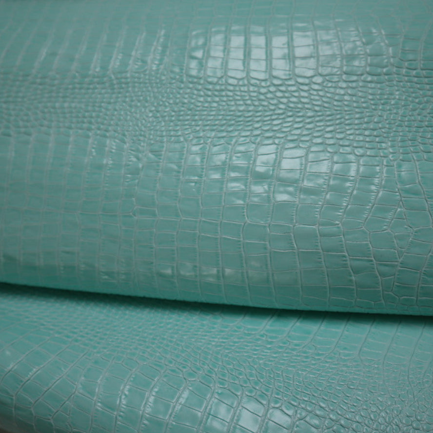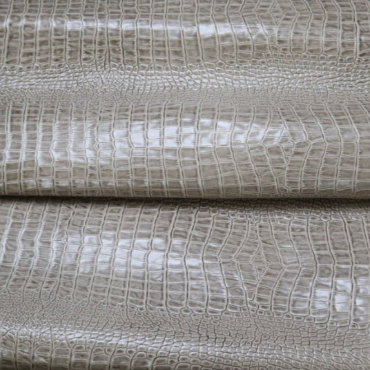 Barcelona- Embossed top grain cowhide in repeating belly print of crocodile. Aniline color top applied, hand antiqued effect with a glazed finish. Colors will vary from skin to skin as aniline dyed finished system.