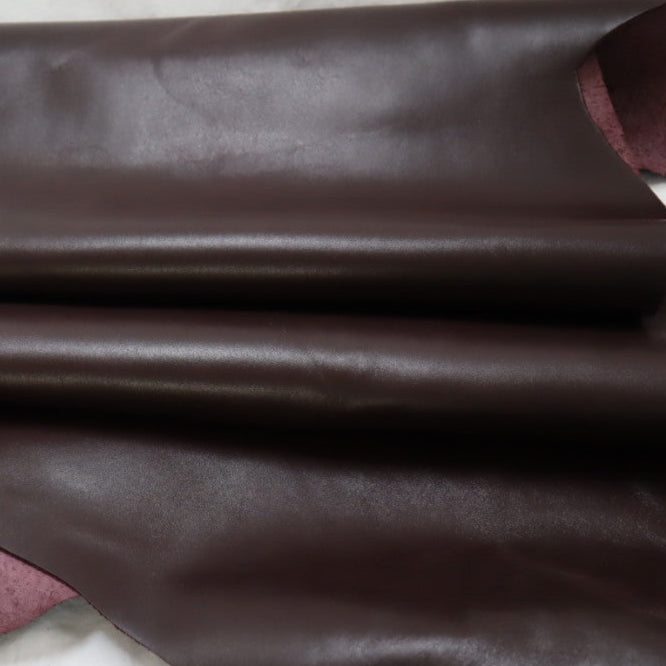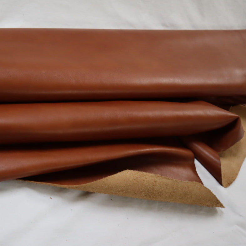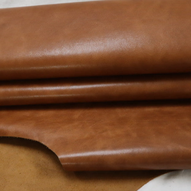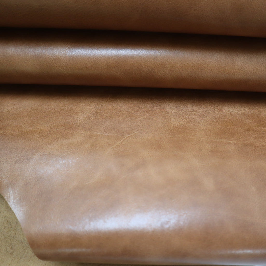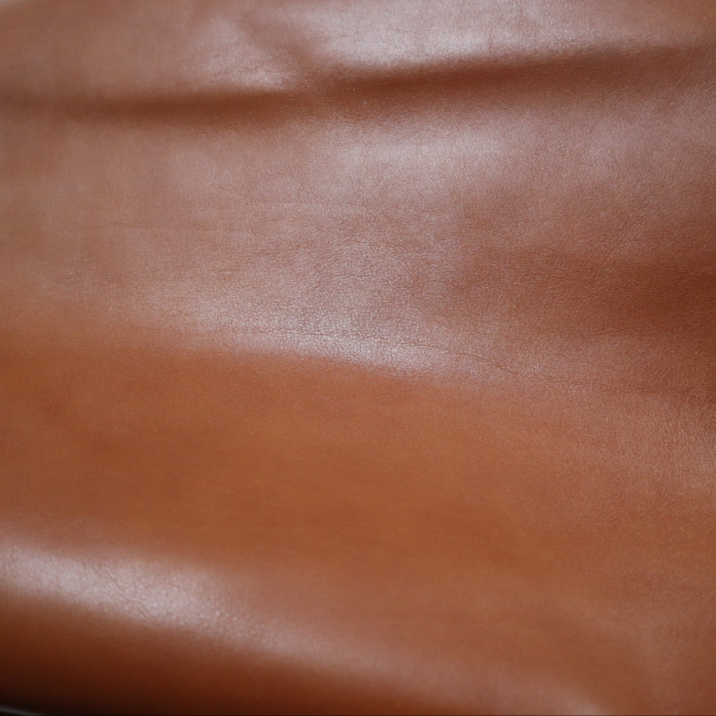 Candy- Milled natural grain smooth top grain cowhide, aniline drum dyed through crust, top dyed aniline, with glazed top finish. Soft touch with rounded hand feel. Colors will vary due to natural aniline dyed process.