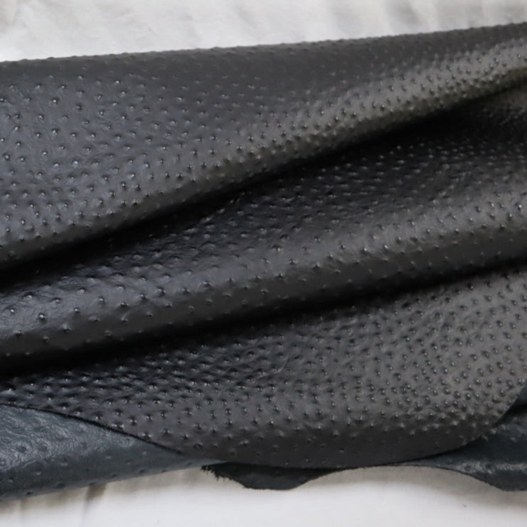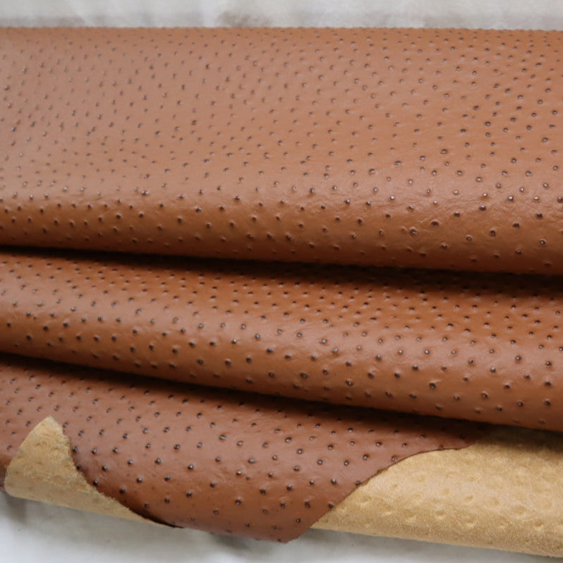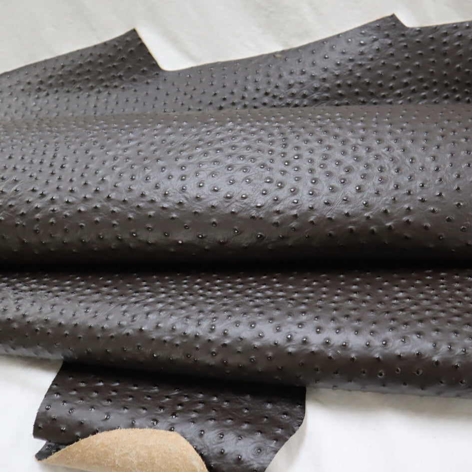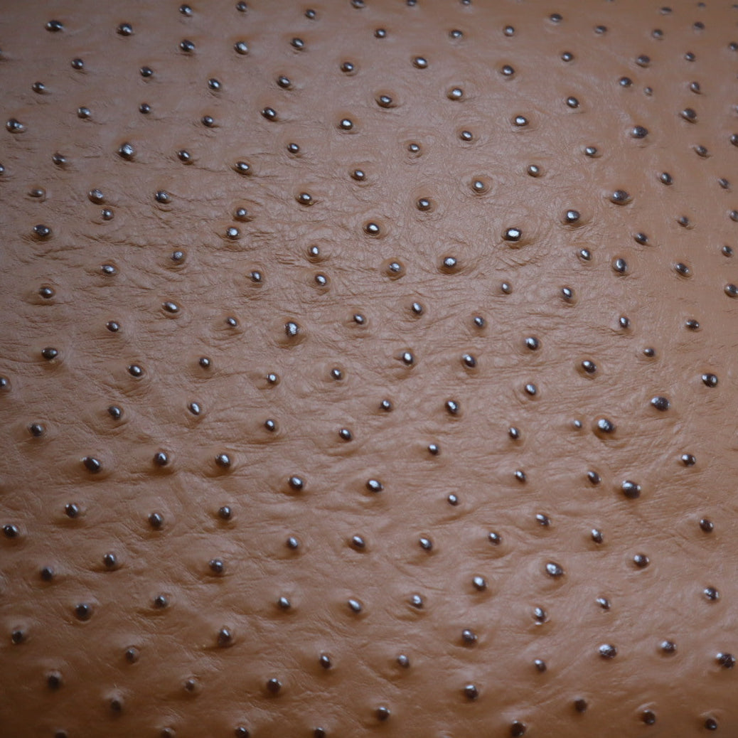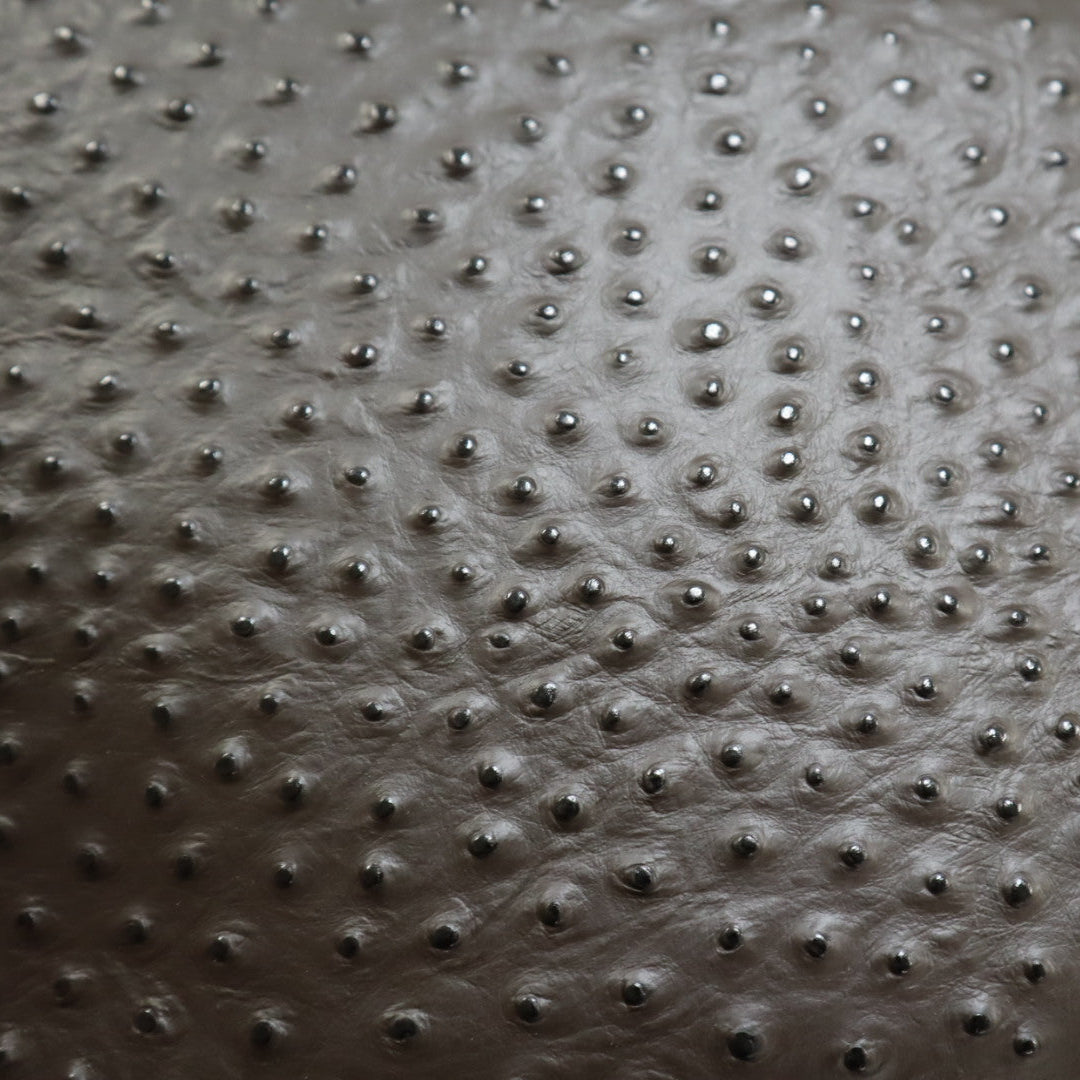 Classic Ostrich- Embossed top grain cowhide in uniform ostrich print with high and firm quill effect. Aniline dyed crust, aniline hand tipped top finish. Tanned to be firm temper to hold the print. Colors may vary skin to skin due to hand made aniline production.