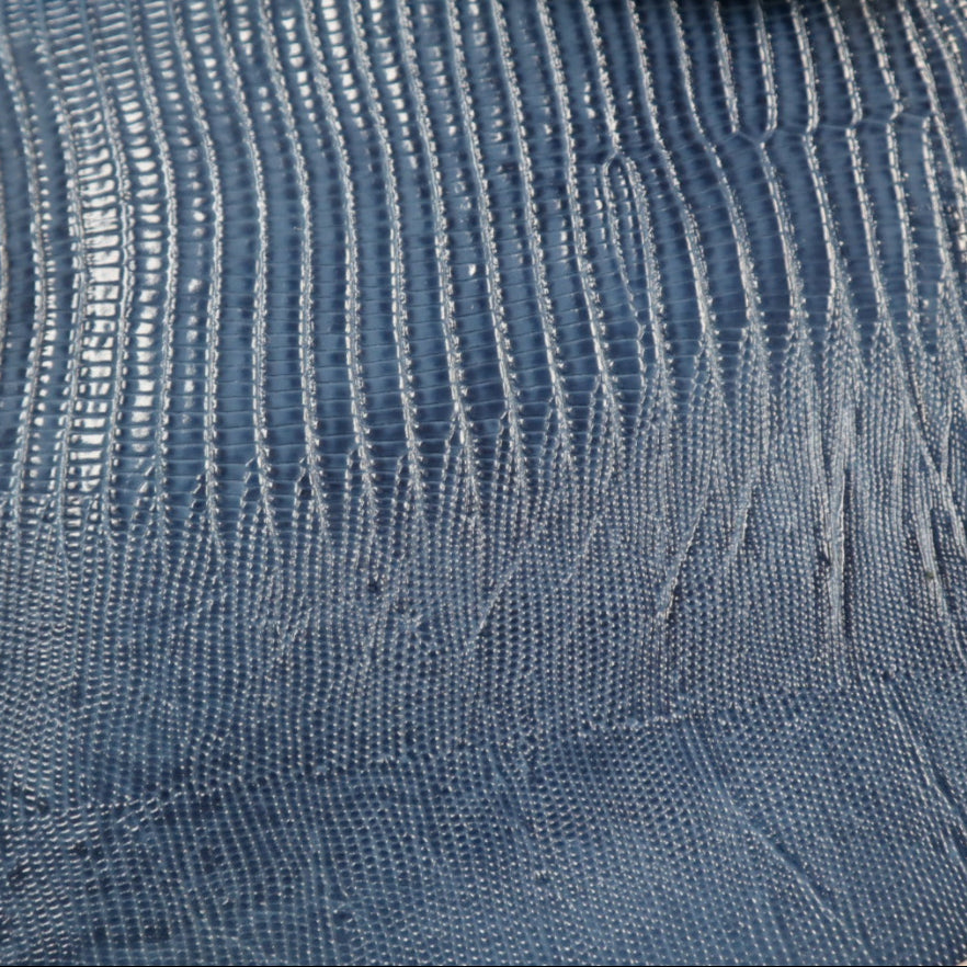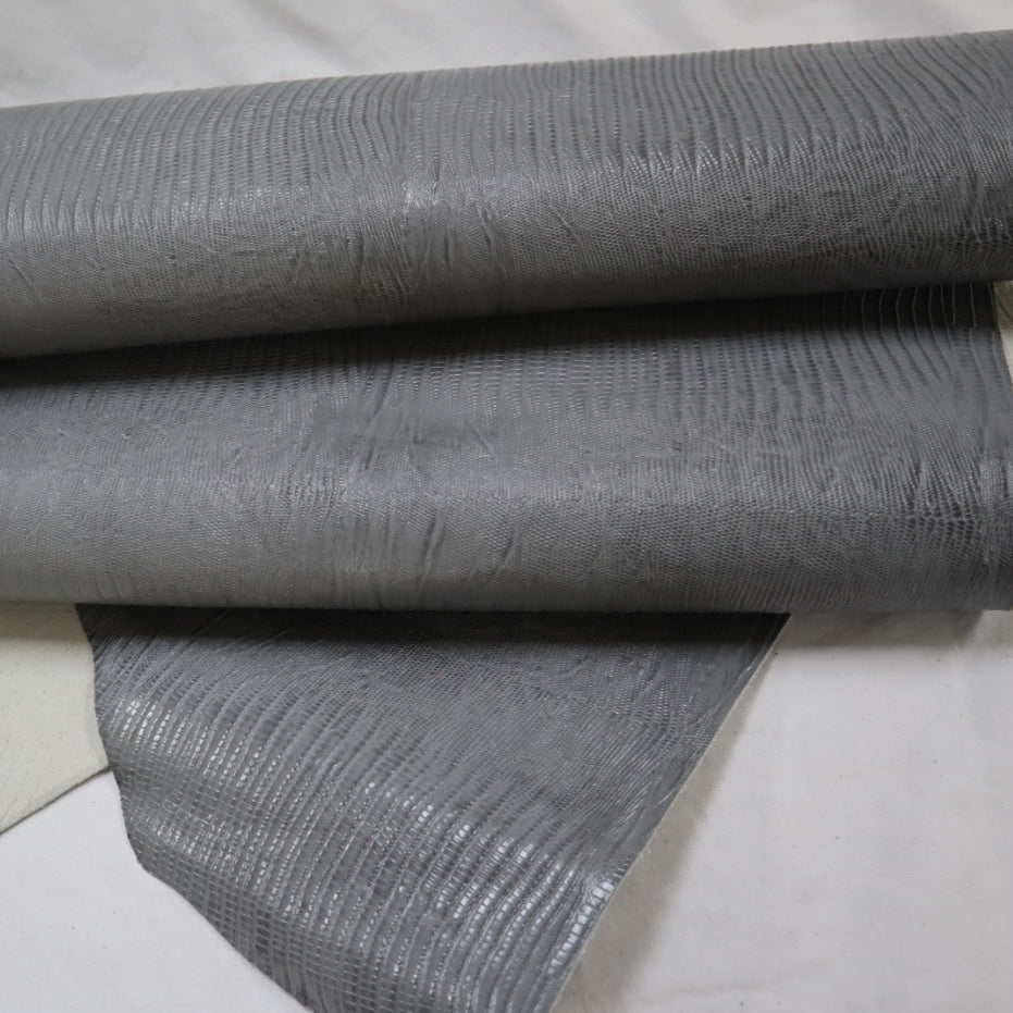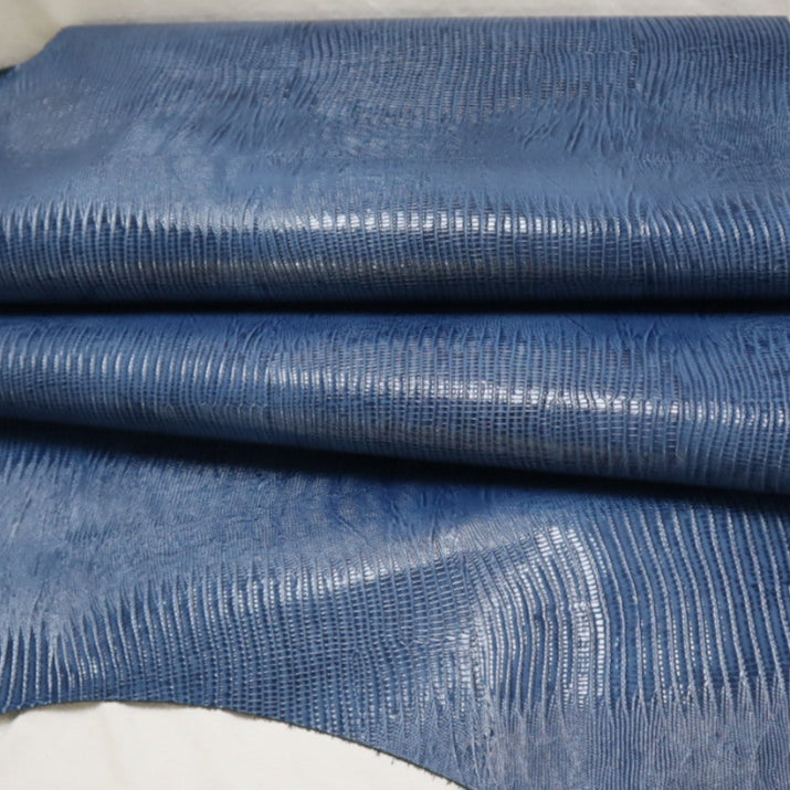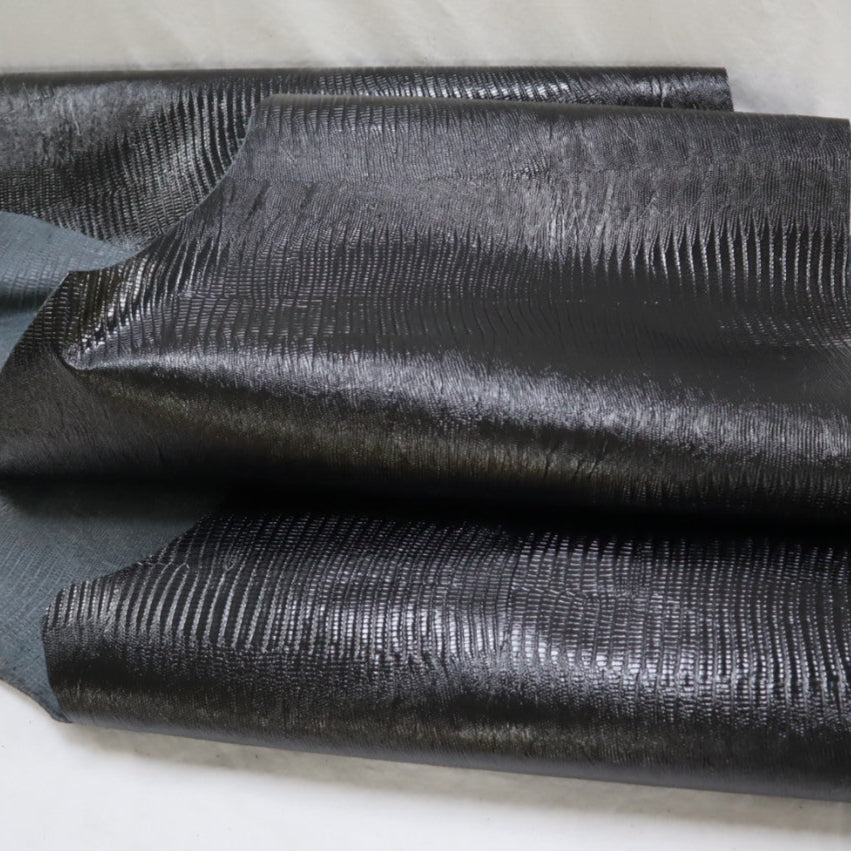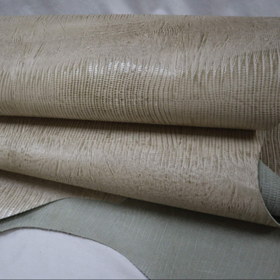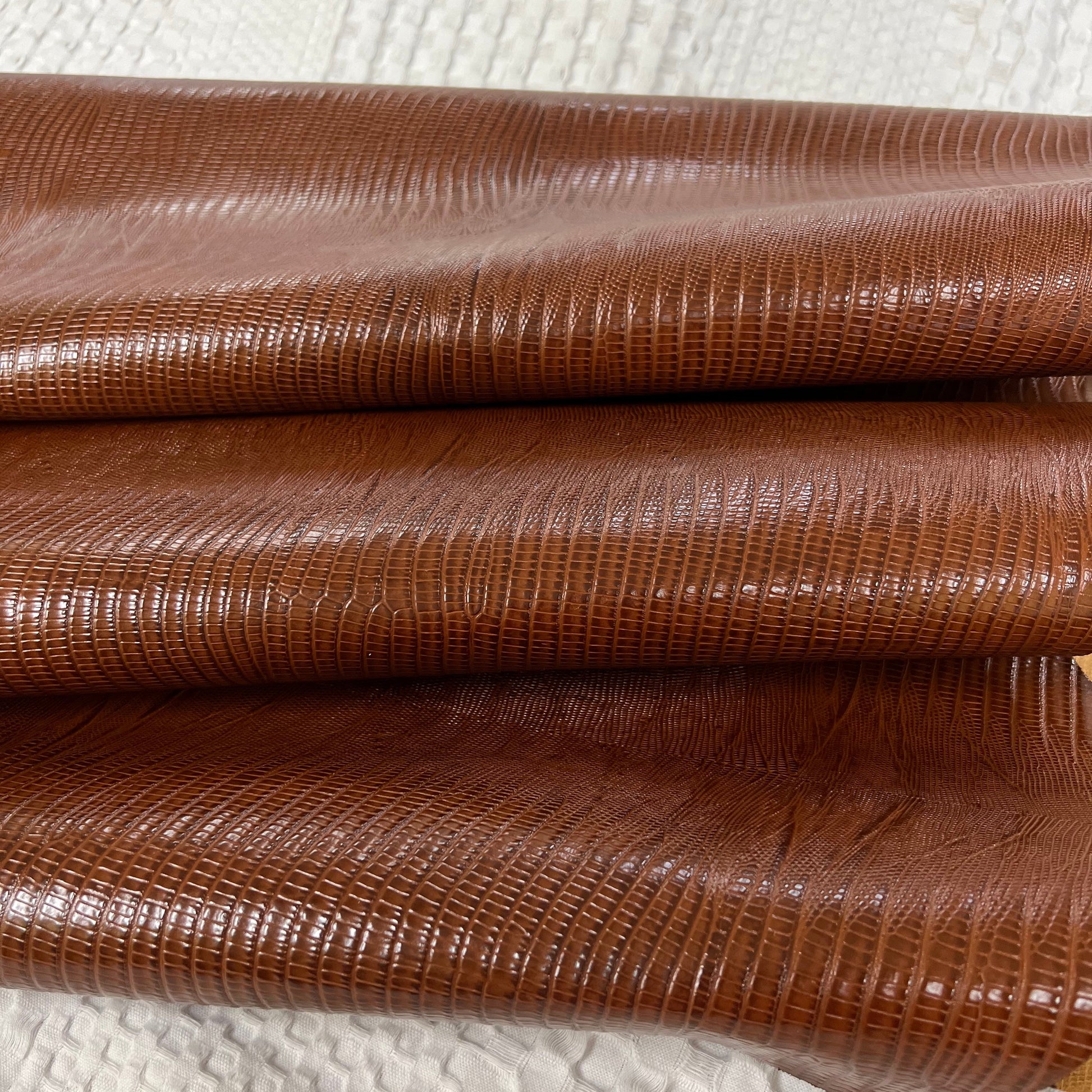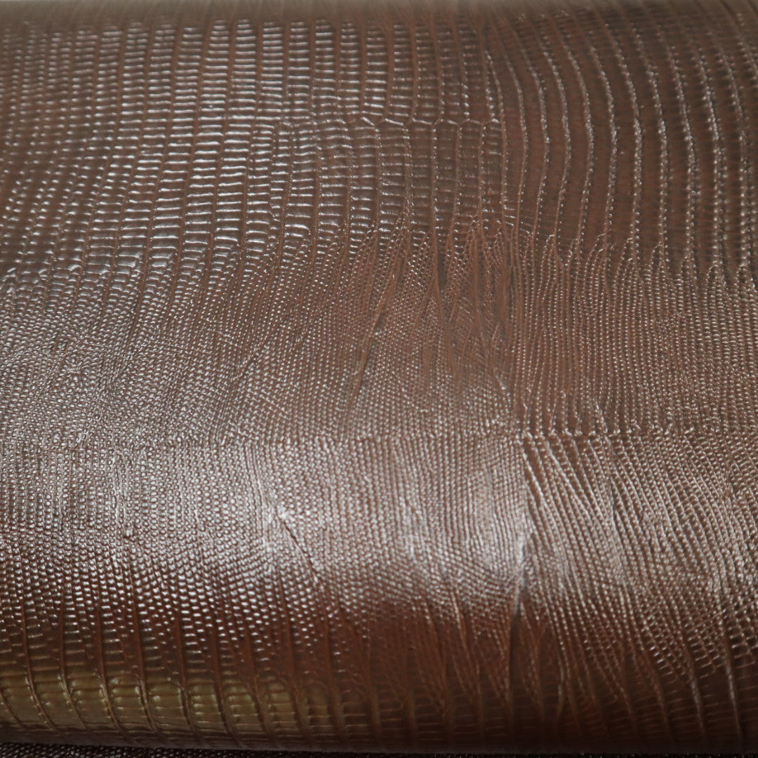 Classic Teju- Embossed top grain cowhide in repeating teju lizard print with high and firm embossing effect. Aniline dyed crust, aniline hand tipped top finish with a shine glaze. Tanned to be firm temper to hold the print. Colors may vary skin to skin due to hand made anline production.