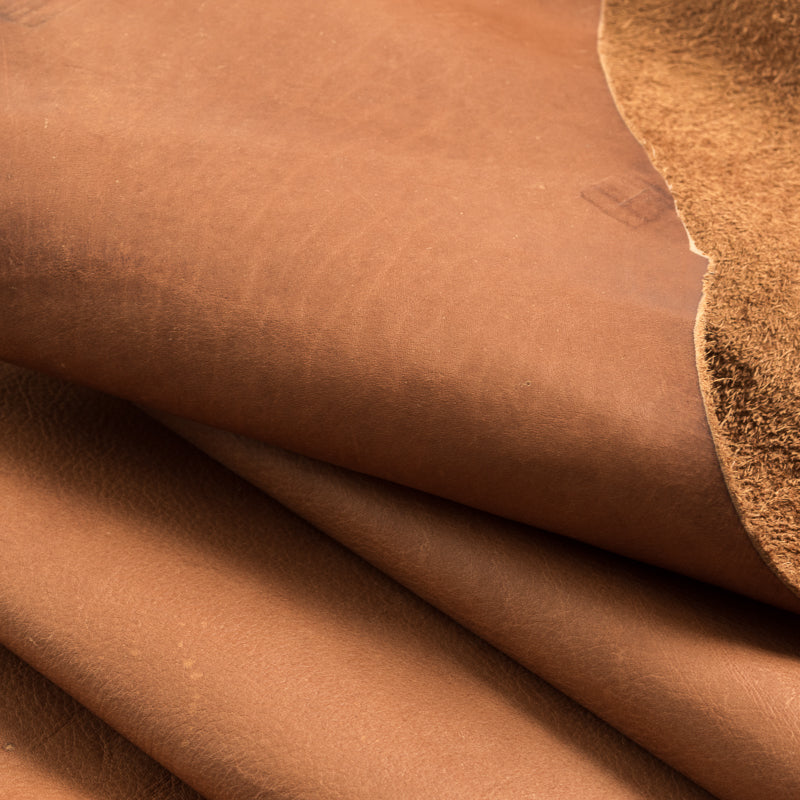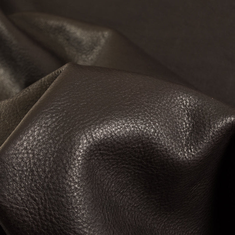 Deercow- Top grain cowhide tanned like deer skins, soft nappa type leather. Aniline drum dyed through color, semi waxy top touch, with naked finish. Soft draggy top touch. Color may vary skin to skin due to aniline color system.