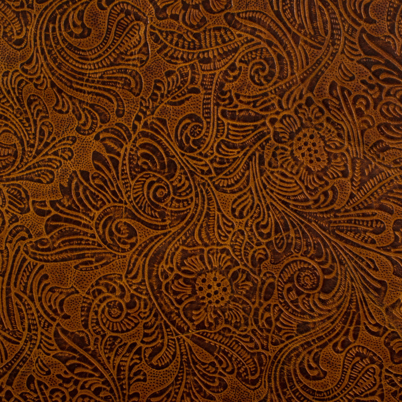 Jw Cowboy Floral – Embossed top grain cowhide in uniform floral design. Aniline drum dyed through crust, top finished with natural wax and anline dyes. Leather is washed at final to create vintage effect. Colors will vary skin to skin due to hand made aniline dye process and washing of leather in final stage.