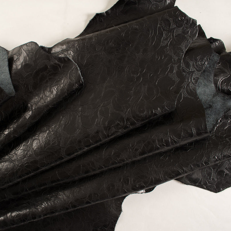 JW (Rustic) Eagle – Embossed top grain cowhide in large rose petal design, Aniline drum dyed through crust, hand rubbed with natural wax and anline dyes. Leather is washed at final to create vintage effect.