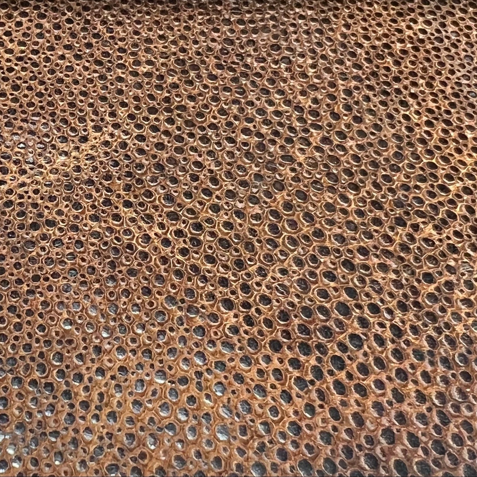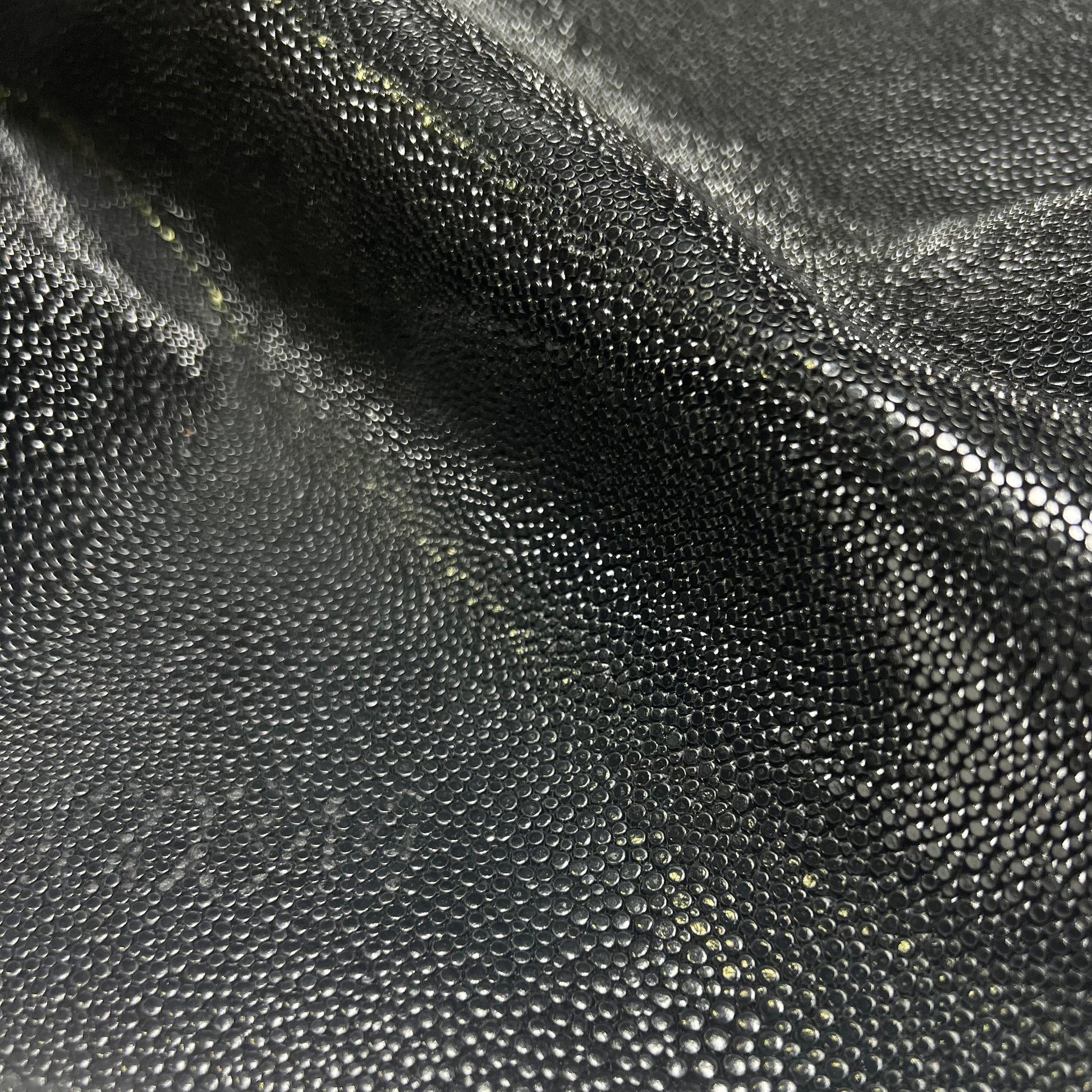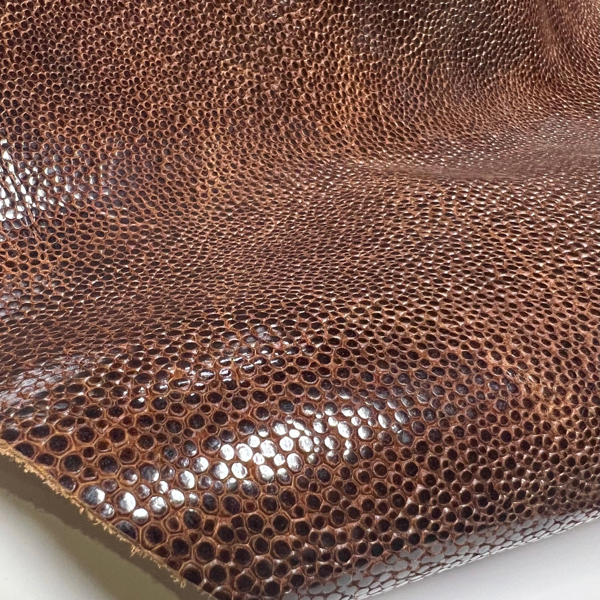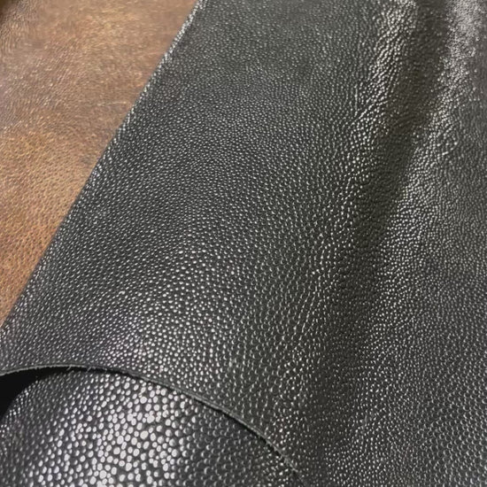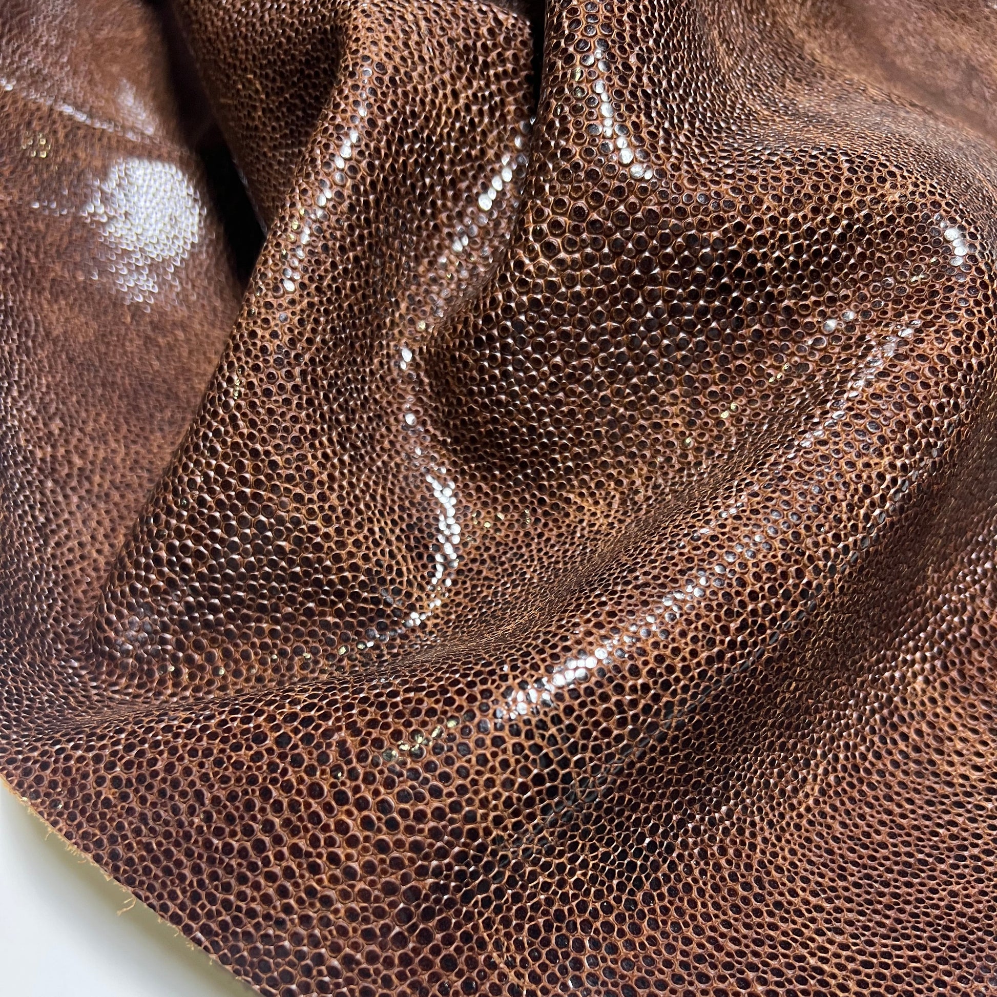 JW Stingray- Embossed top grain cowhide in uniform print, aniline drum dyed base crust, top applied natural shinny wax, hand applied aniline dye top finish, soft temper. Colors will vary from lot to lot due to aniline dye system.