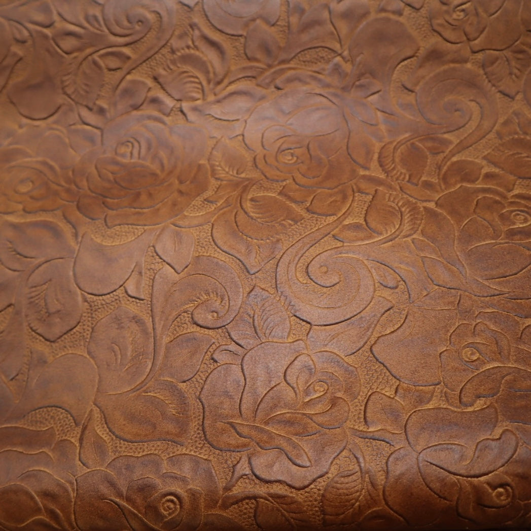 Moab - Utilizing old techniques of hand spraying aniline dyes. The rose embossing plate accentuates and embodies the desert type environment with this finish. It carries a light and dry look while being soft and flexible. By hand spraying opposed to machine finishing, we allow the artesian touch to come alive to show more character in color.