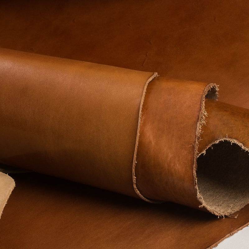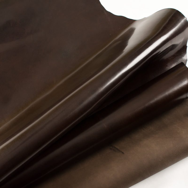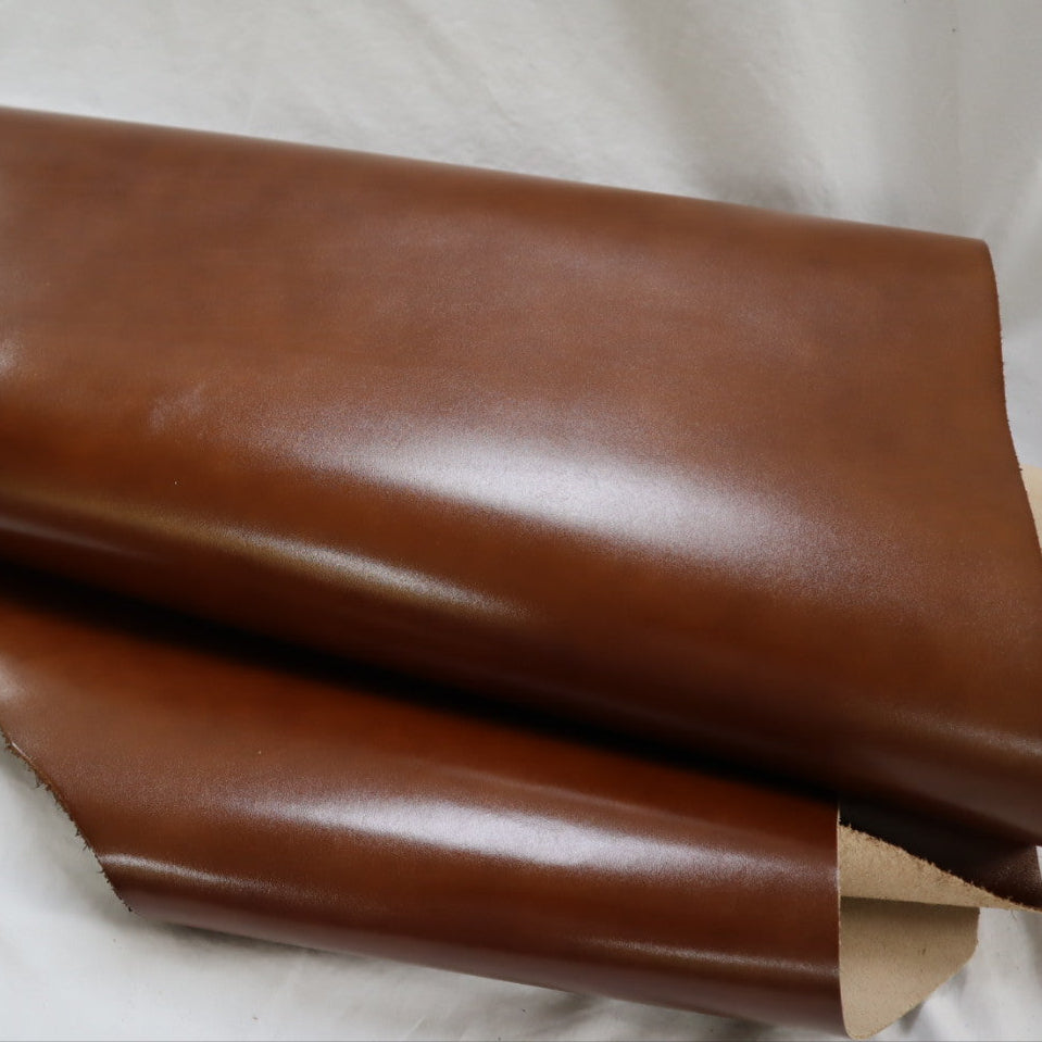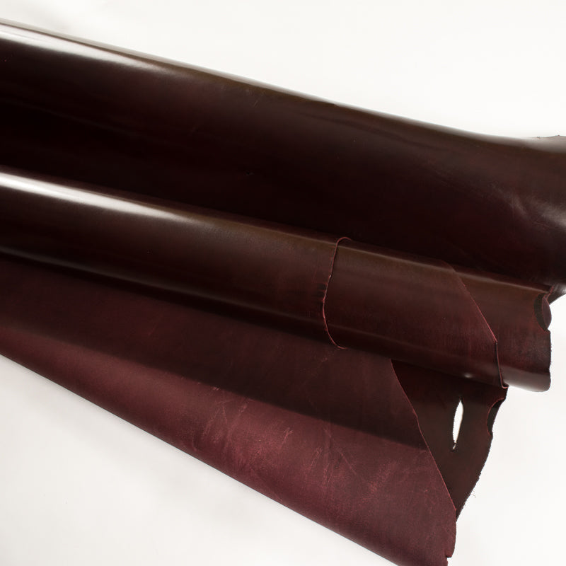 Monte Carlo- Top grain plated smooth cowhide leather. Aniline drum dyed to match base crust, Aniline top finished, hand glazed for smooth like glass finish. Medium to firm temper, Colors will vary from skin to skin due to aniline dye system.