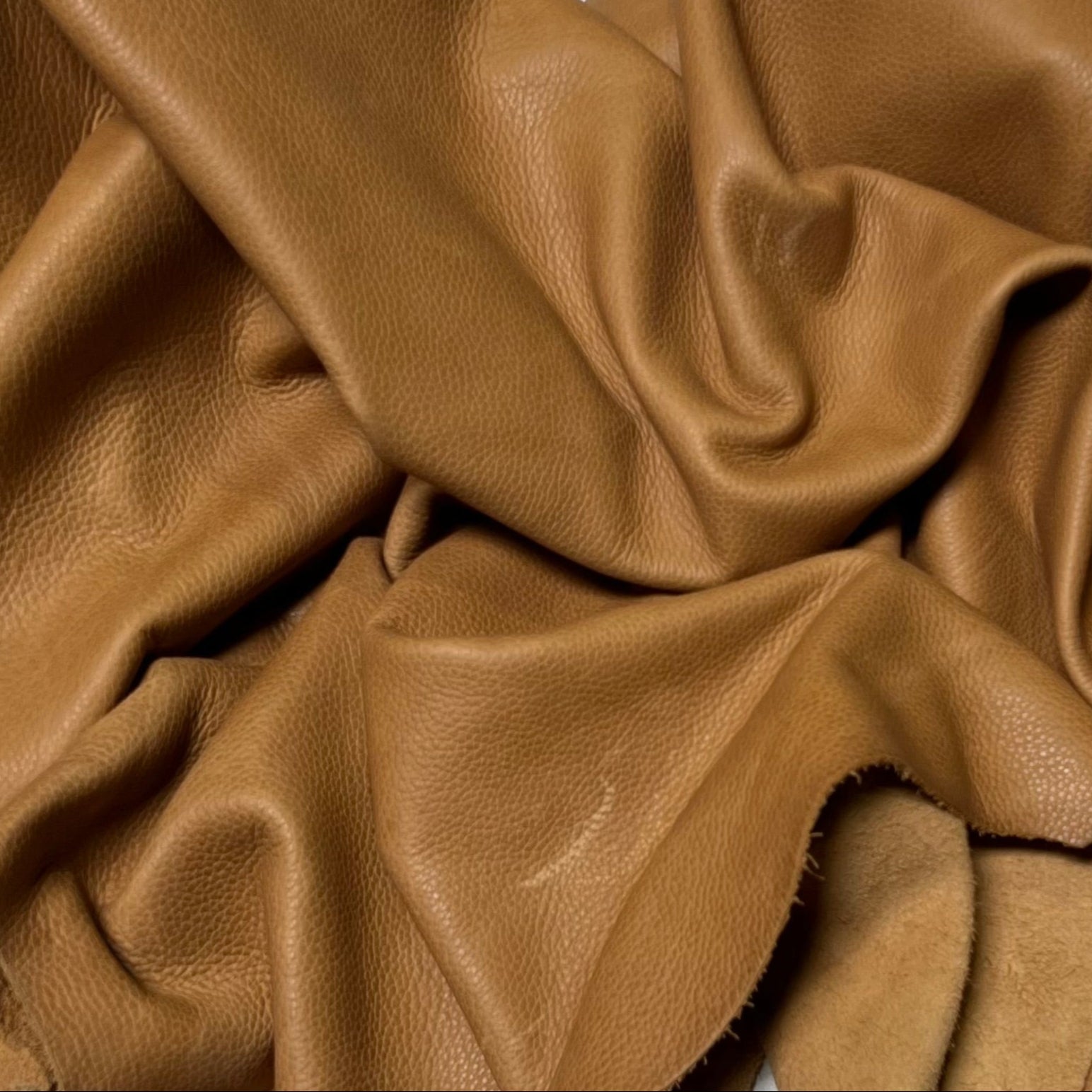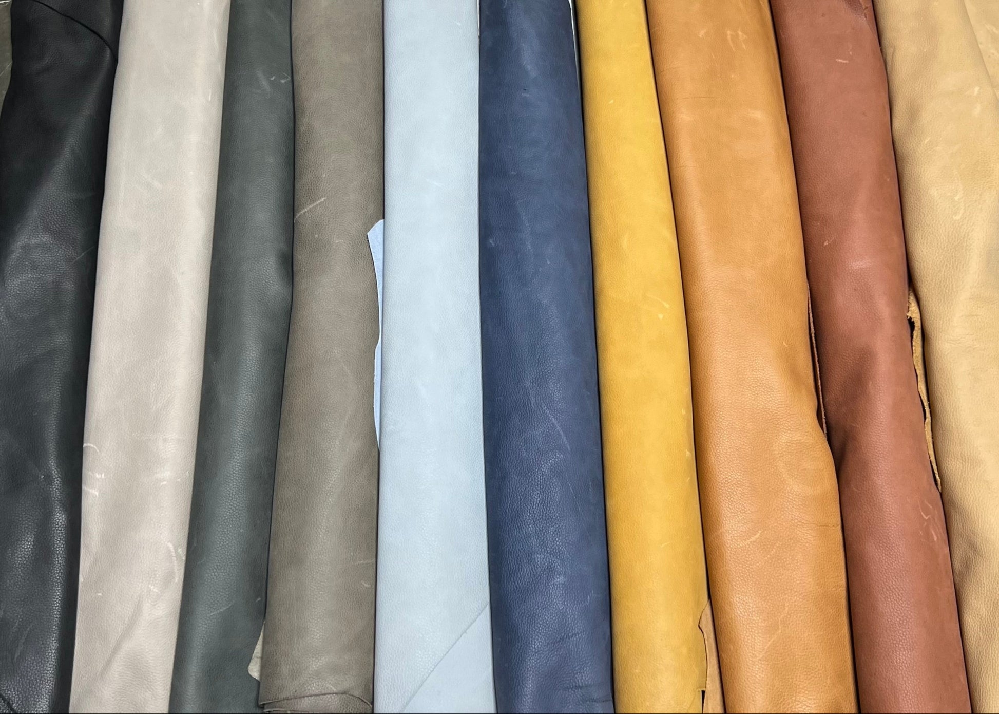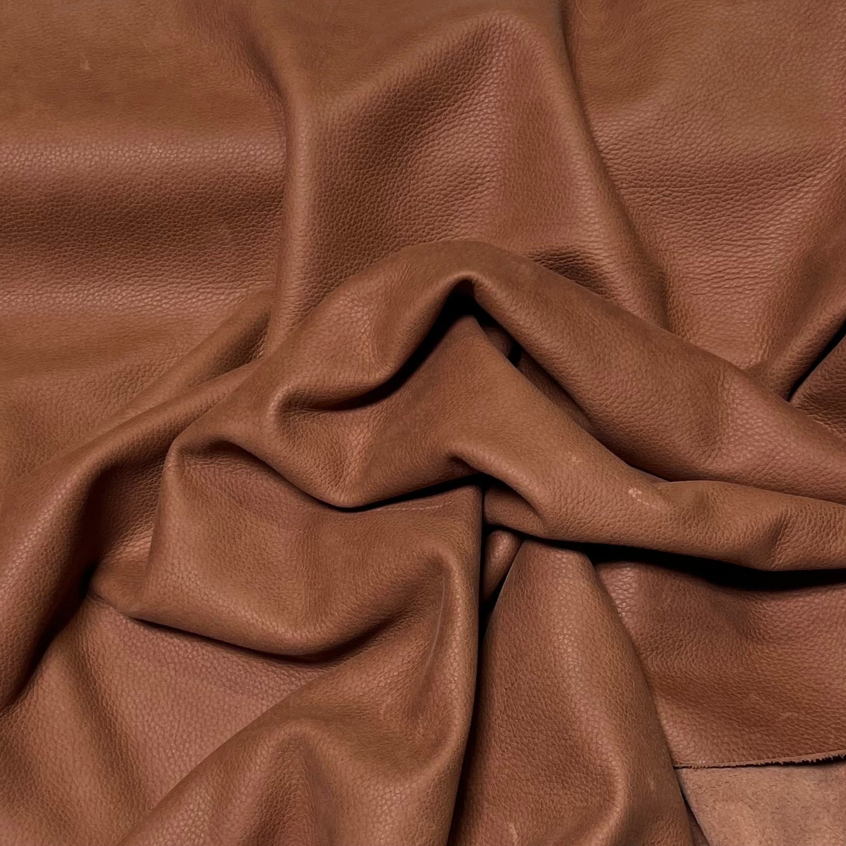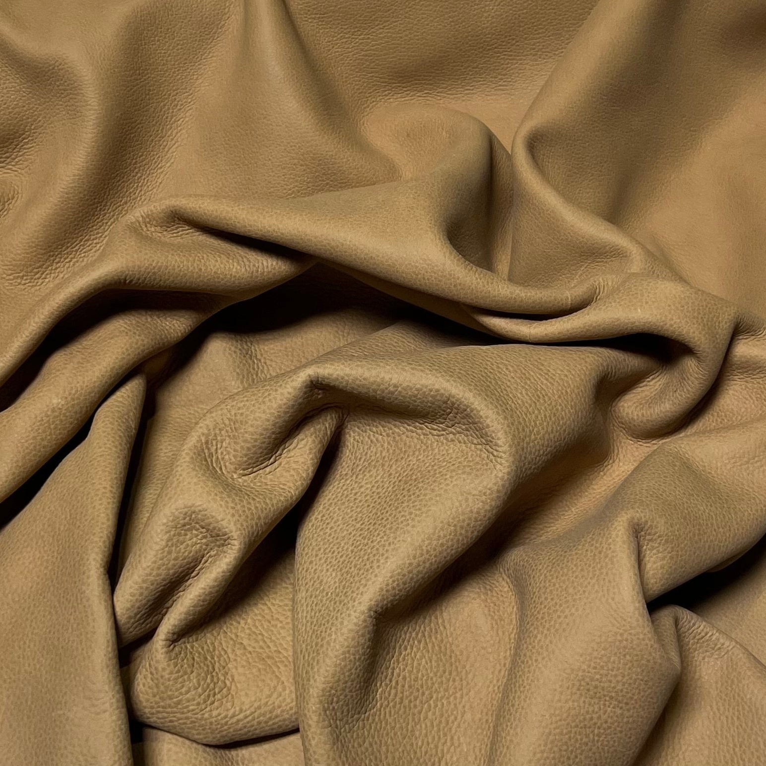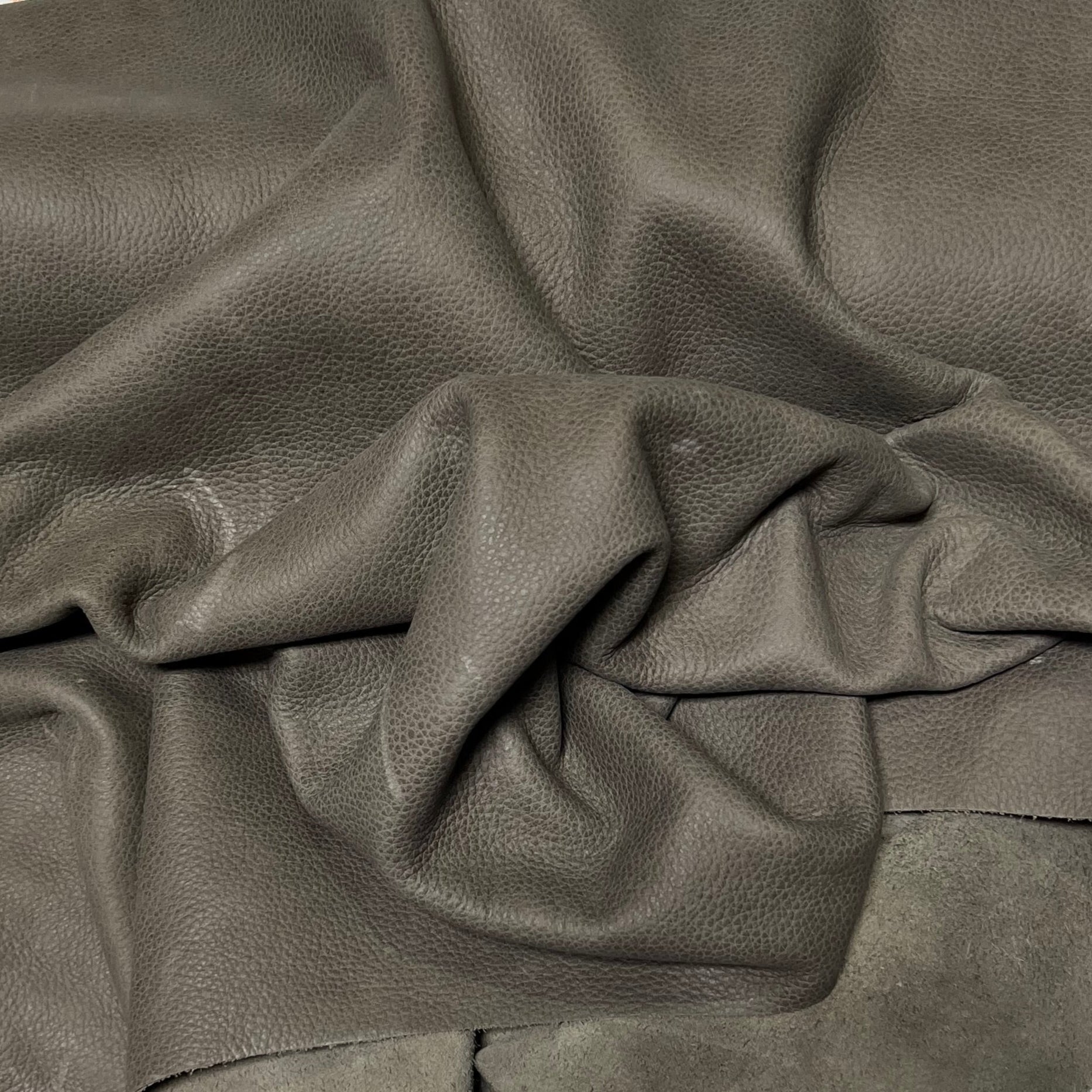Mountain- Embossed top grain cowhide in uniform pebble texture, milled to create floating pebble, naked finish with only drum dyed aniline color. Almost nubuck hand feel. Colors will vary skin to skin due to aniline drum dyed process.