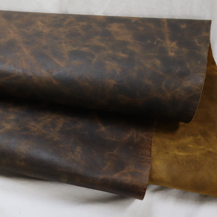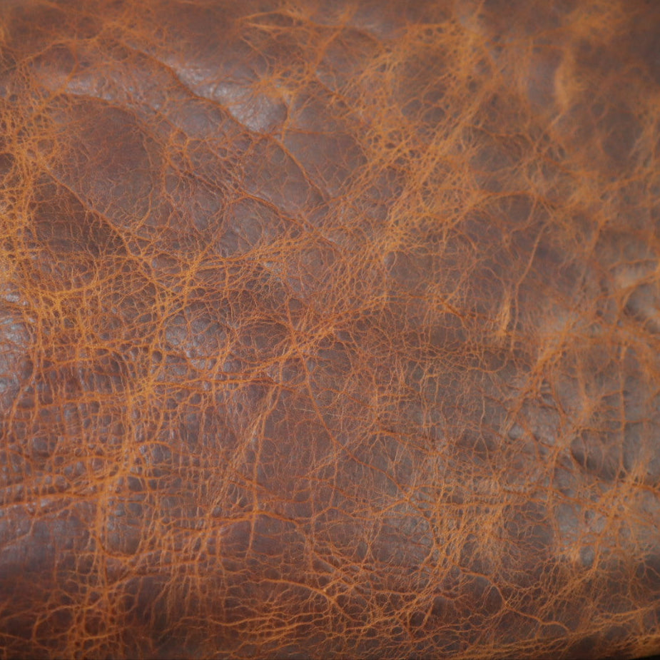 Outpost- Hot stuffed oil/wax top grain cowhide, milled to make vintage effect, aniline drum dyed through color, top finished with pressed wax and anline dyes. Colors will vary skin to skin due to aniline dye process.