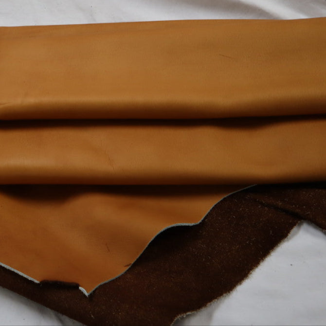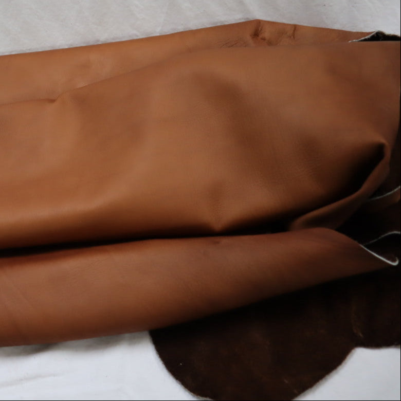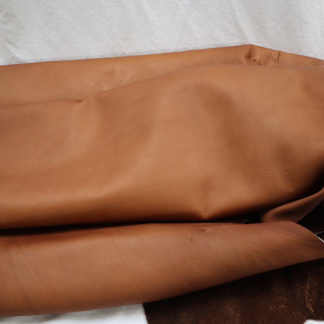 Ranch- Top grain cowhide nappa type leather, anline dyed crust, soft milled smooth texture. Naked finished with anline dyes. Skins are tanned using special process to have plump (squishy) hand feel. Colors will vary skin to skin due to the aniline dyed process.