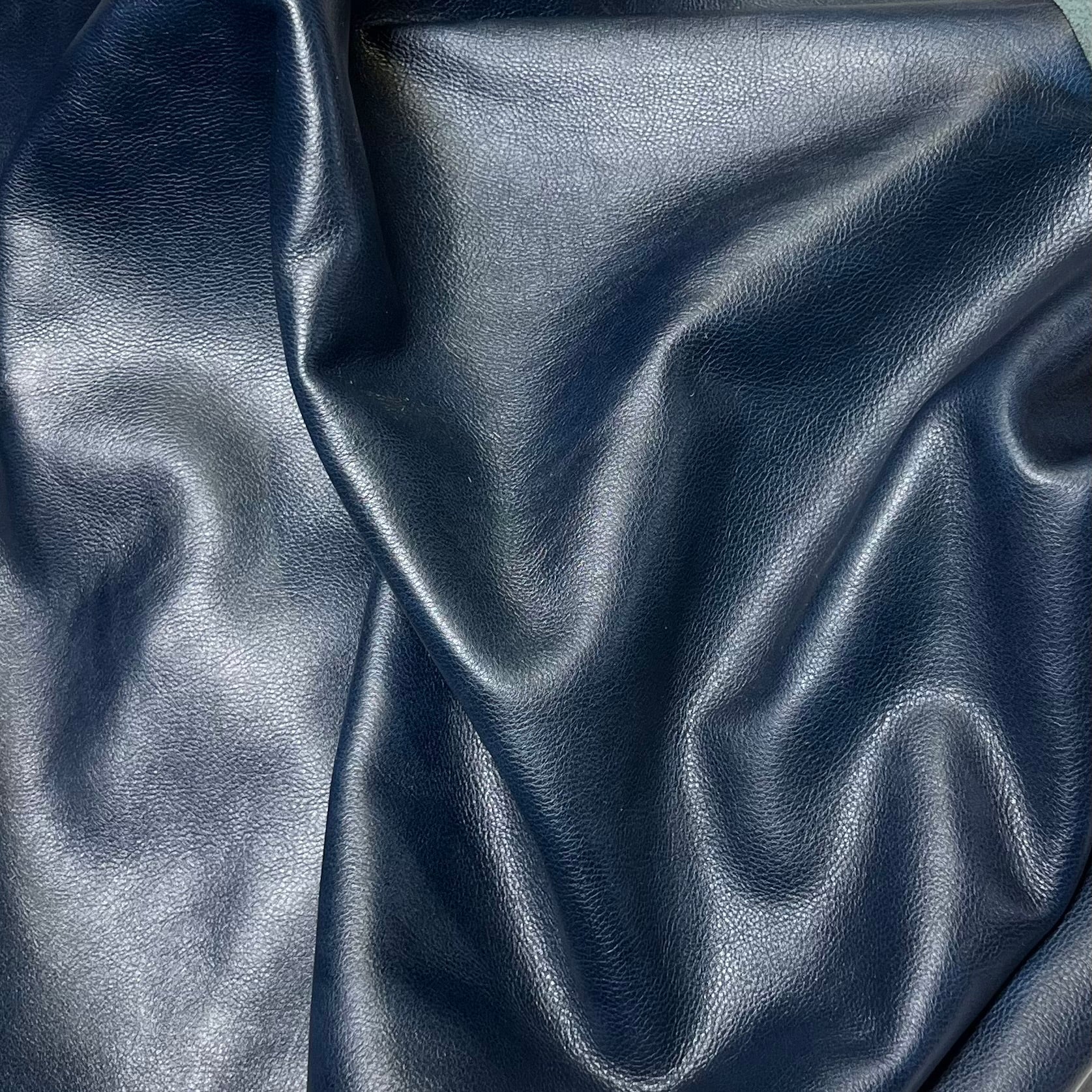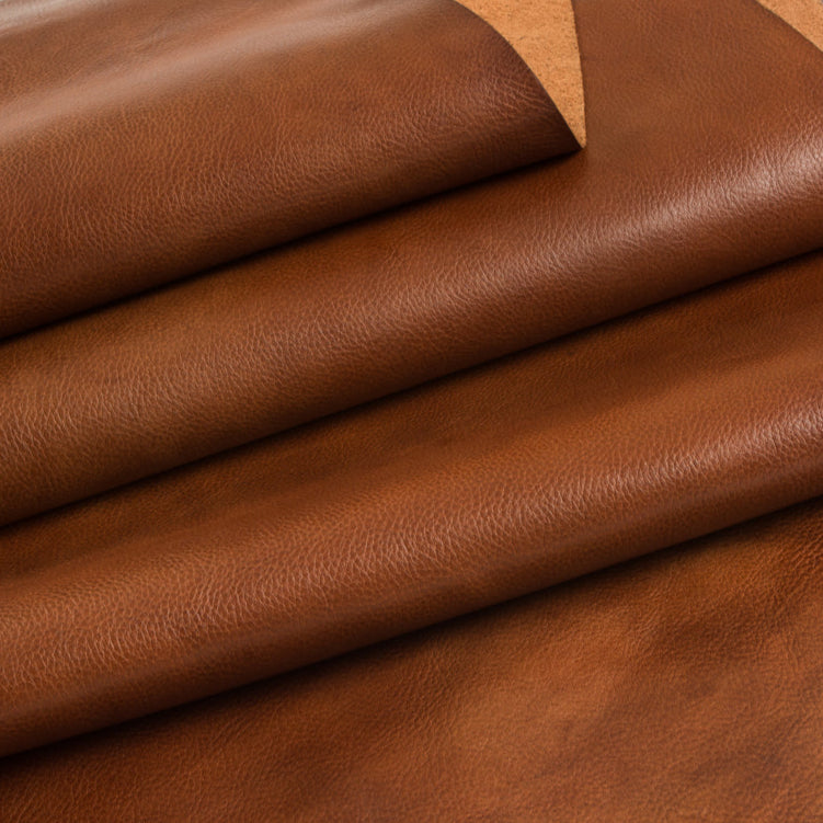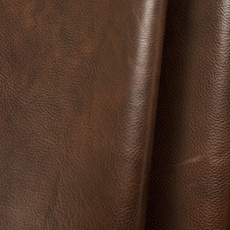 Seville- Hand antiqued top grain half calf skins. Small skins milled to make pebble effect before antiquing by hand with aniline dyes. Marble effect made by hand rubbing. Aniline drum dyed through base crust, top finished aniline by hand. Soft to medium temper with tight grain. Colors will vary skin to skin due to hand made process.