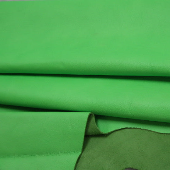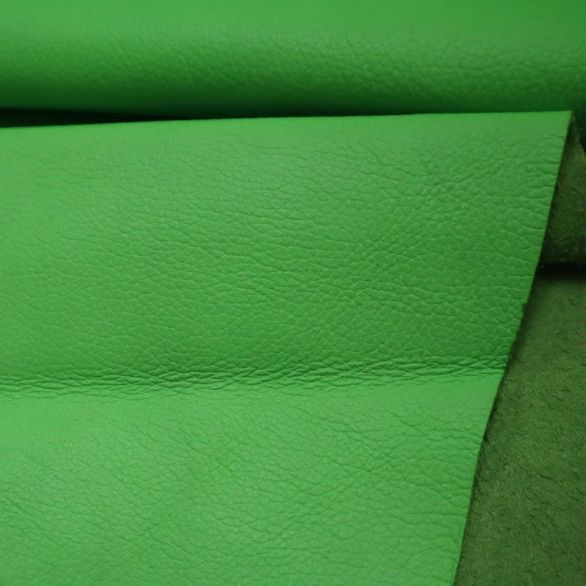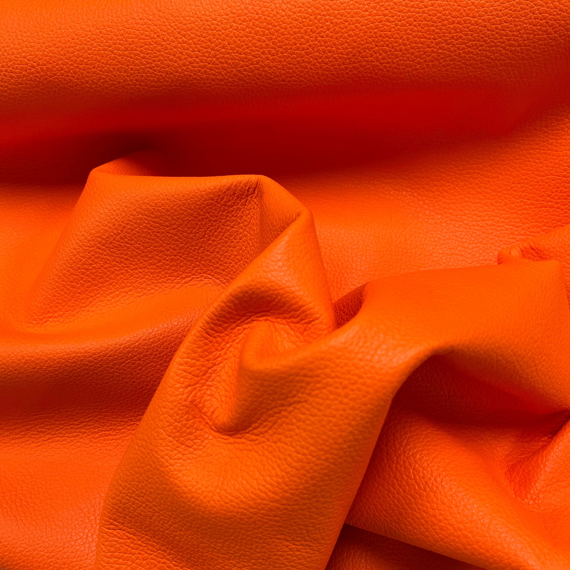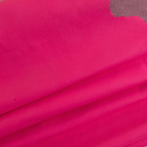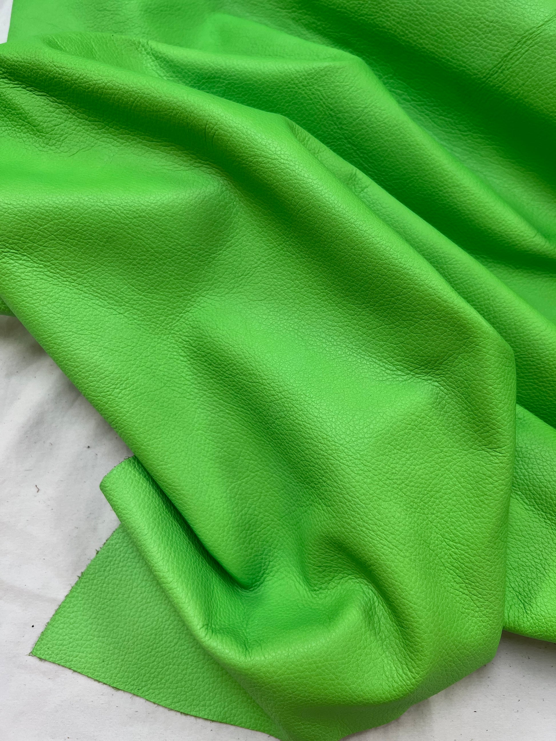Super Neon- Embossed top grain cowhide in uniform pebble print. Aniline drum dyed to color, top finished with semi pigmented/semi aniline dye in neon bright color. Milled for a soft temper. Colors will vary from lot to lot due to semi aniline dye process.